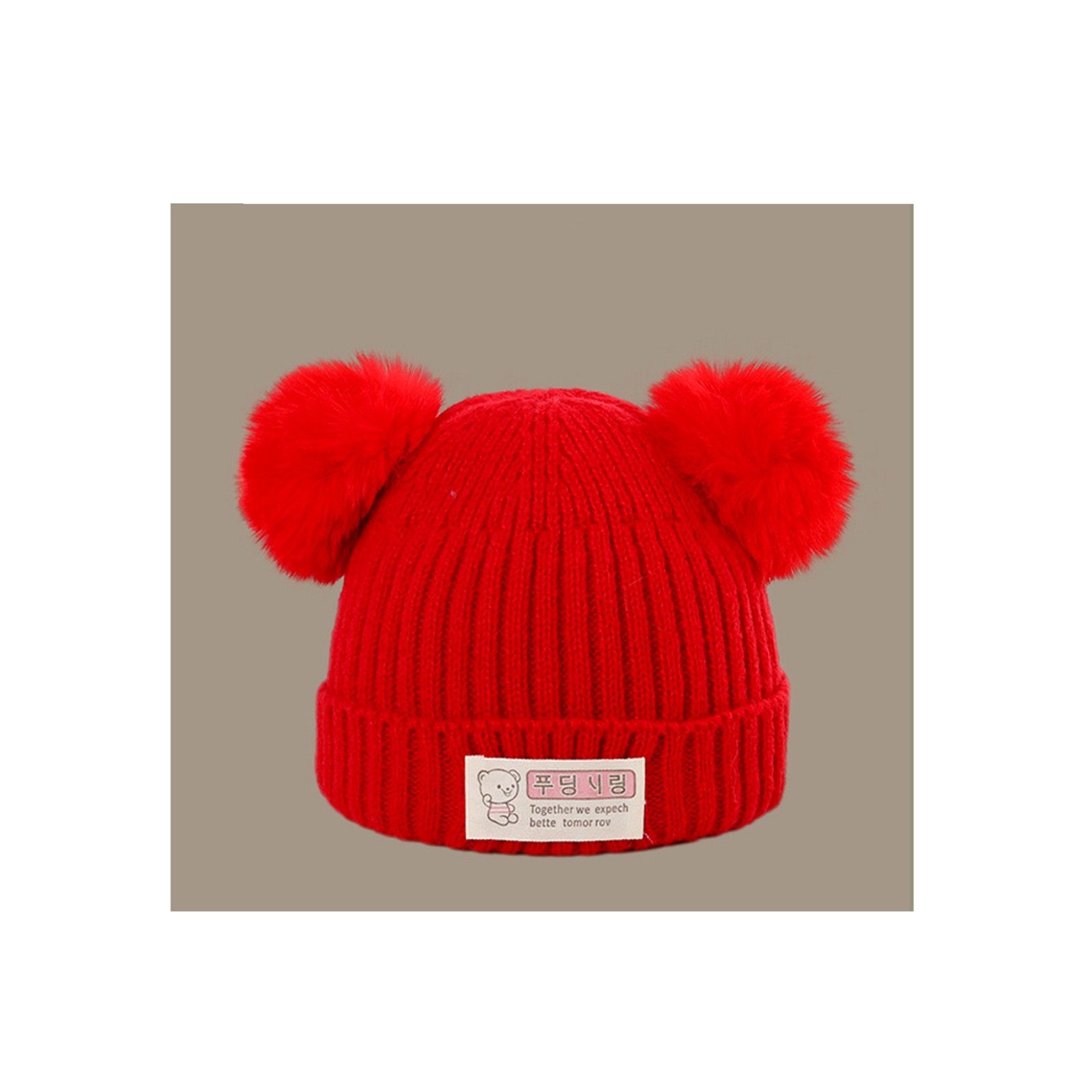 Keep your baby warm and stylish with this adorable red knit beanie featuring playful double pom-poms on top. Made from soft, cozy knit fabric, this beanie provides the perfect warmth for chilly days, while the stretchable material ensures a snug and comfortable fit. The vibrant red color and fun pom-pom details make it a charming addition to any winter outfit, adding both style and warmth. This beanie is ideal for everyday wear or as a delightful gift for new parents.
