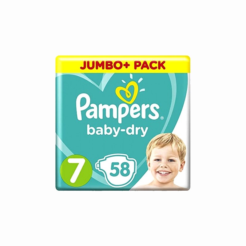 Pampers Baby-Dry Diapers in this Jumbo Pack provide superior comfort and protection for your little one throughout the night and day. Designed for babies requiring size 7, these diapers offer up to 12 hours of all-night dryness with their innovative extra absorb channels, which evenly distribute moisture to keep your baby feeling dry and comfortable. The soft, breathable material allows for airflow, preventing irritation and ensuring your baby’s skin remains healthy. The secure fit stays snug, even on active babies, providing freedom of movement without leaks. With 58 diapers per pack, Pampers Baby-Dry ensures convenience and value, giving parents peace of mind with every change.