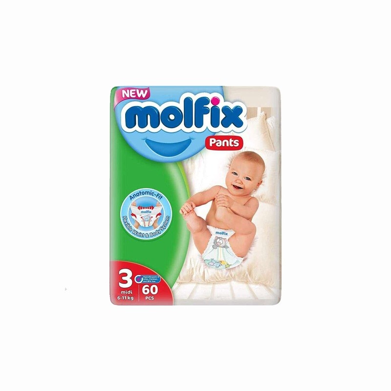 Molfix Baby Pants are designed to keep your baby comfortable and dry with every move they make. These size 3 diapers, suitable for babies weighing 4-9 kg, feature an ultra-absorbent core that ensures long-lasting dryness by quickly absorbing moisture. The 360° elastic waistband provides a snug fit, allowing your little one to move freely and comfortably. With a breathable outer layer, Molfix Baby Pants keep your baby’s skin fresh and irritation-free, making them ideal for daily use. With 60 diapers per pack, Molfix ensures extended convenience and reliable protection for parents and their babies.