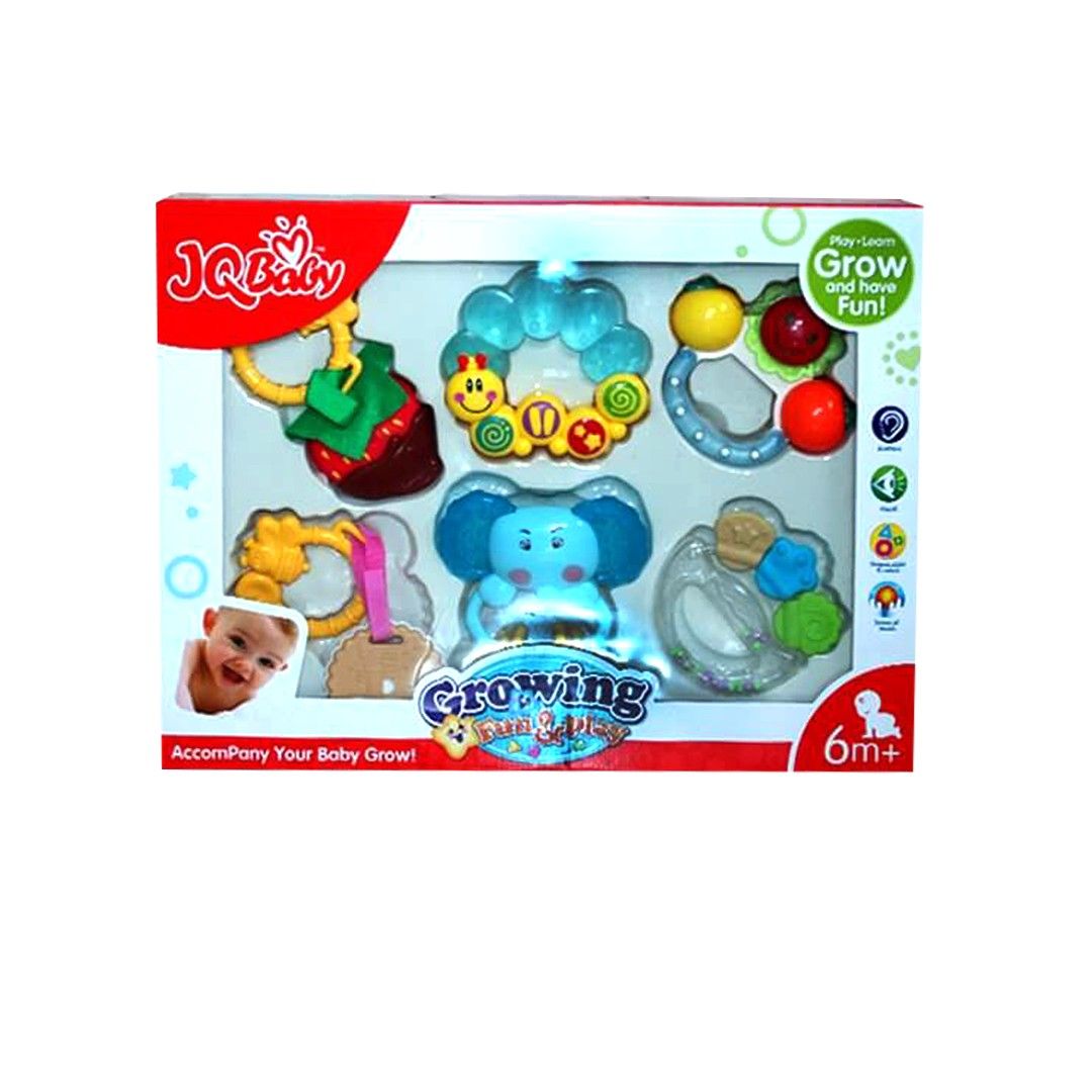 Make playtime a delightful learning experience with the JQ Baby Growing Fun & Joy Rattle and Teether Set, specially designed for infants aged 6 months and above. This vibrant set includes a variety of rattles and teethers that stimulate your baby’s senses and support their early development. Made from safe, non-toxic materials, each piece is lightweight and perfectly sized for little hands to grip and explore. Ideal for teething relief and promoting hand-eye coordination, this set is a must-have for your baby’s growth and entertainment.