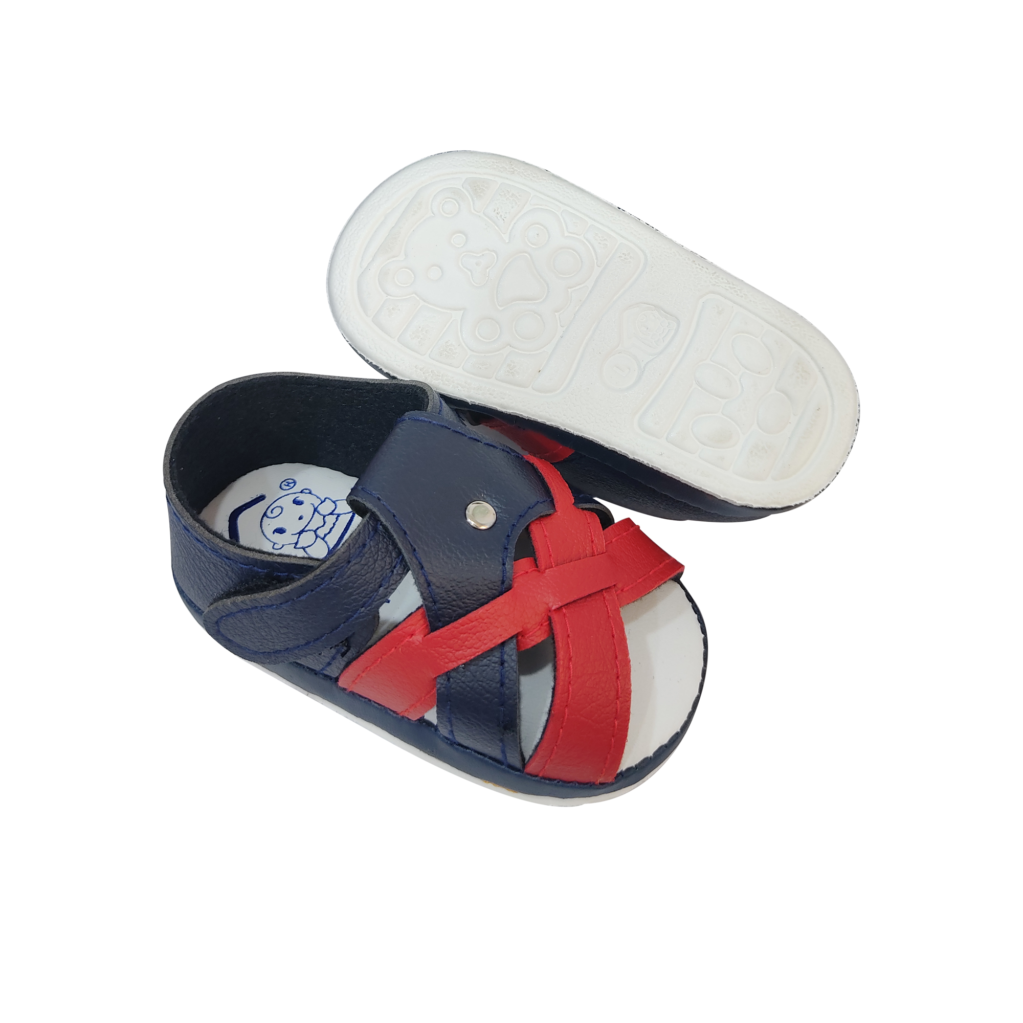 Give your baby the comfort they deserve with these soft and stylish baby sandals! Made with a breathable material to keep tiny feet fresh, these sandals feature an anti-slip rubber sole for added safety. The easy hook & loop closure ensures a perfect fit, making it super convenient for parents. Trendy navy blue and red design makes them ideal for any outfit!